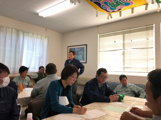 気を付けるべきところを書き出し、安全に作業をする為の活動、「危険予知活動」についての講習をいたしました。